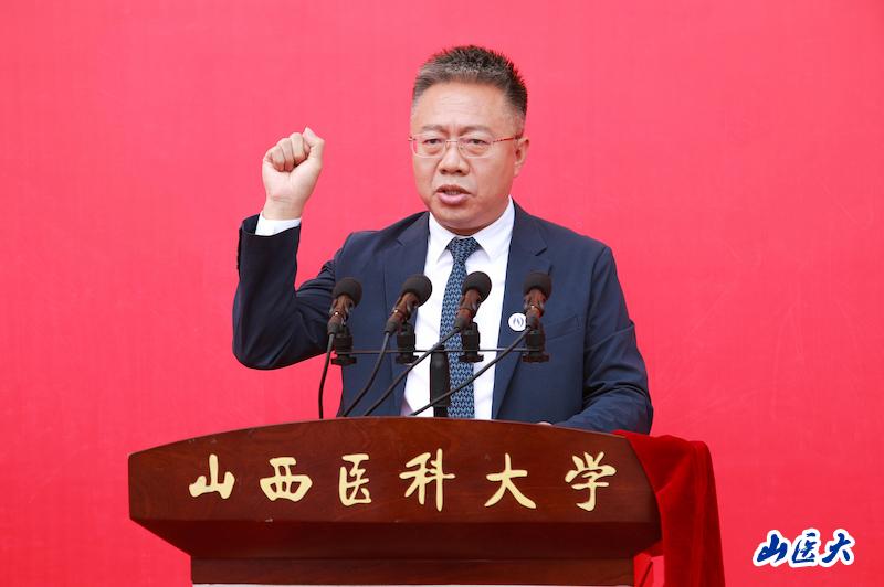 央视《县委大院》等剧作原创编剧、著名作家王小枪作为校友代表发言。他以学长的身份勉励同学们,编剧和医生、从医和从文,都要有共情力、怜悯心和爱。学医者首在仁心,怀悲悯之情,锤炼精湛技术。他祝愿每一位学弟学妹在山医的青春岁月丰富多彩,开始一段难忘、有爱的大学旅途。
