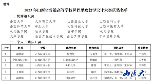 我校在2023年山西省课程思政教学设计大赛中获得佳绩!