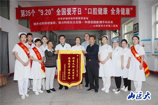 9月20日下午,我校第二医院口腔科和预防保健科为中国电子科技集团公司33所的离退休老年群众进行了以“老年口腔健康保健”为主题的科普义诊活动。口腔科马宇锋主任、李文晋副主任、张晓丽护士长及任婉峰副主任医师和邢立婷主治医师等10名医护人员参加了活动。今年是第35个“全国爱牙日”,今年爱牙日的主题是“口腔健康,全身健康”,副主题是 “关爱老年口腔,乐享健康生活”。此次活动积极响应了《健康中国行动(2019—2030年)》《健康口腔行动方案(2019—2025年)》指导方针和政策,以全面提升老年群众口腔健康素养。